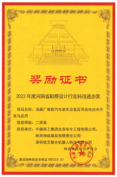 2021年,优艾智合联合中煤科工集团北京华宇工程有限公司研发选煤厂智能汽车装车及低压停送电技术,设计提升自动化水平的建设方案,实现无人、少人化生产,助力神延煤炭有限公司西湾煤矿选煤厂智能化升级,打造世界一流的安全、高效、绿色、智能选煤厂。