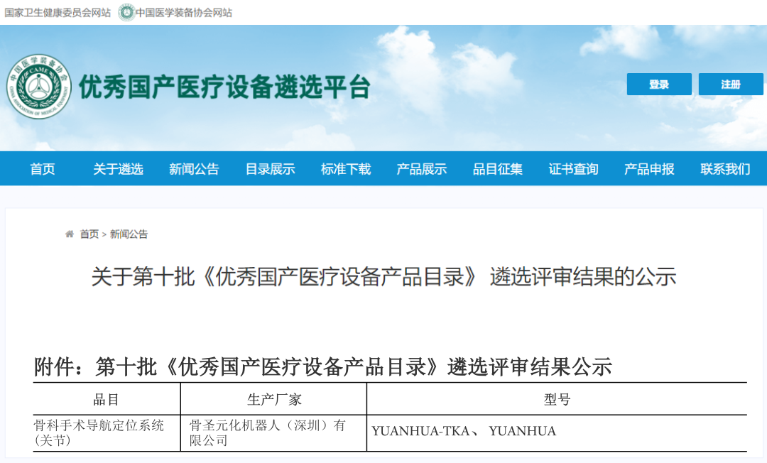 图文:锟铻@全骨科手术机器人入选“优秀国产医疗设备产品目录”