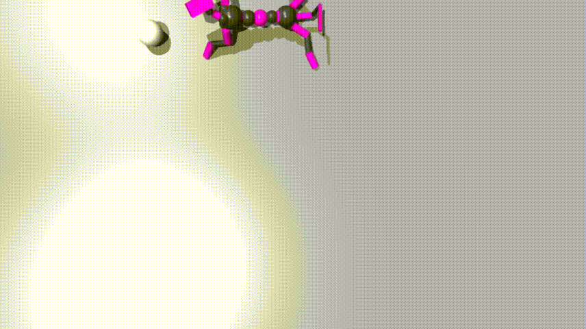 奖励:有两个与任务相关的奖励,一个是鼓励伸展双臂,另一个是激励尽量缩小双脚与目标接触区域中心之间的距离。