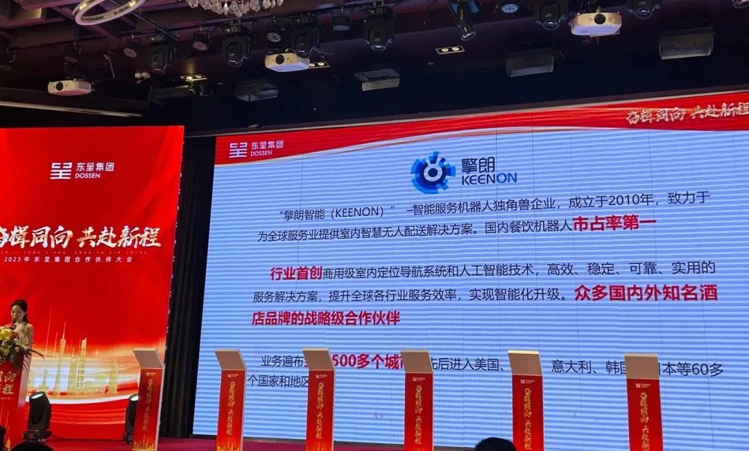 近日,由东呈酒店集团(以下简称“东呈”)主办的“奋楫同向 共赴新程”为主题的2023年合作伙伴大会在广州举行。擎朗智能作为商用服务机器人行业的领军企业受邀参会,并与“东呈”正式签署了战略合作协议。双方将共同协力推动服务机器人深入酒店场景,助力酒店行业提质赋能,通过提供高稳定、高效率的无接触服务,助力企业产业化、数字化、智能化升级。擎朗智能与东呈的强强联合,大幅度提升了客人的入住体验。