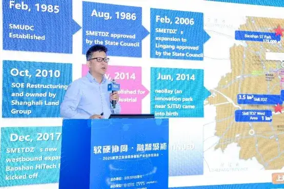 地产闵虹业务总监顾闻从地产闵虹和下属开发区的40年发展历程、坚守制造产业与创新多元化载体提供服务外资、战新和高科技企业等角度进行了主题分享。作为载体提供方,他以全球500强ABB在闵行开发区和闵联临港园区的发展为例,详述了工业4.0时代,地产闵虹如何将定制工厂场景与具身机器人产业链在内的创新技术引入相融合,并通过地产闵虹的招商信条“L、E、A、D“”概念(即长期主义者、广泛的产业认知、先进科技和深入的行业认知),打造并深化其作为企业长期伙伴和共同成长为各自行业领导者的远景。