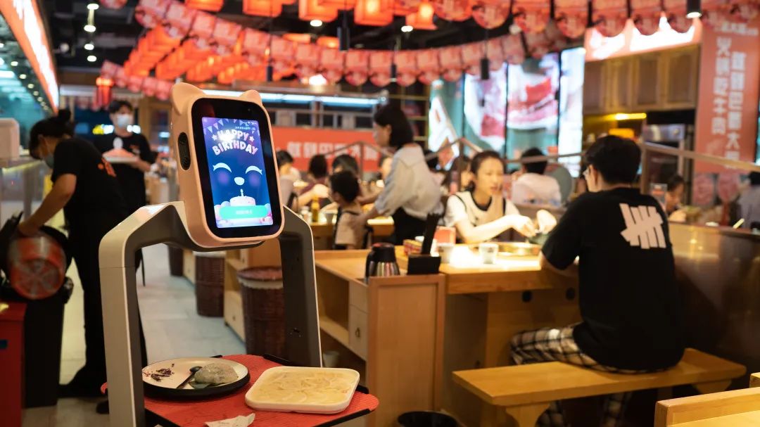 于子瞻:这款专门在餐厅工作的“招财豹”机器人,最初投入使用时只会送餐,现在揽客、带客、报菜名,它全都学会了。