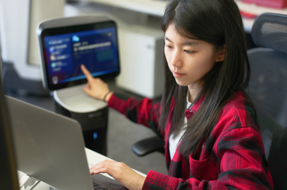 于子瞻,一名服务机器人应用技术员,每天会与机器人的用户进行沟通,收集用户的反馈,然后根据这些意见,去整理一些接下来要迭代优化的方向,去和技术人员进行沟通,再由他们进行落地的实现。