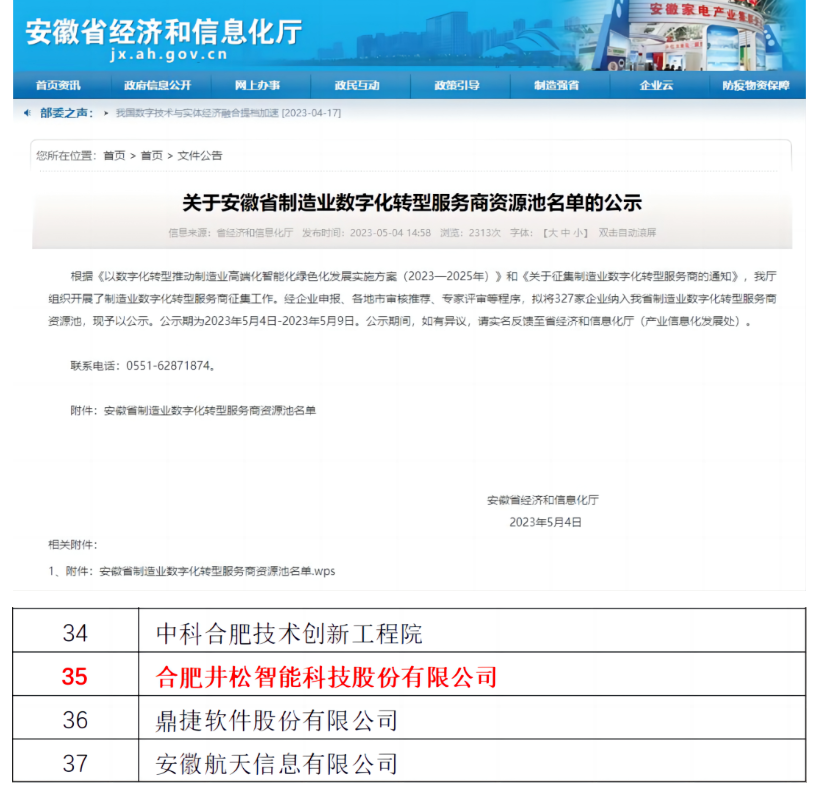 机器人大讲堂获悉,近日,井松智能继连获“酒水智慧物流技术优秀案例奖”、“2023新能源行业智能制造TOP50”、“钢铁行业优质供应商”3项大奖后,再次入选安徽省制造业数字化转型服务商资源池和2023年制造业单项冠军培育企业,硕果连连。