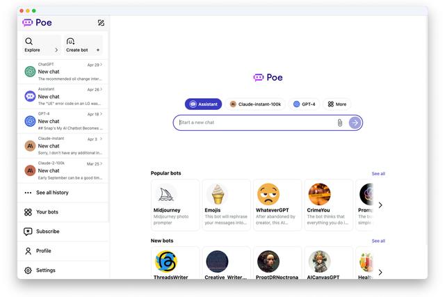 Poe 的平台上有各种各样的 AI 聊天机器人,例如 OpenAI 的 ChatGPT-4 和 Anthropic 的 Claude。用户只需支付 19.99 美元(IT之家备注:当前约 146 元人民币) / 月或 200 美元(当前约 1458 元人民币) / 年的订阅费,就可以无限制地使用所有的机器人。新推出的 Mac 应用与 Poe 的网页和移动应用非常相似,都可以让用户与多个机器人进行交流。