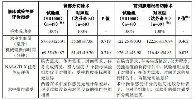 以招股书中披露的肾部分切除术对照数据为例,康多机器人的手术成功率比肩达芬奇机器人,达到100%;