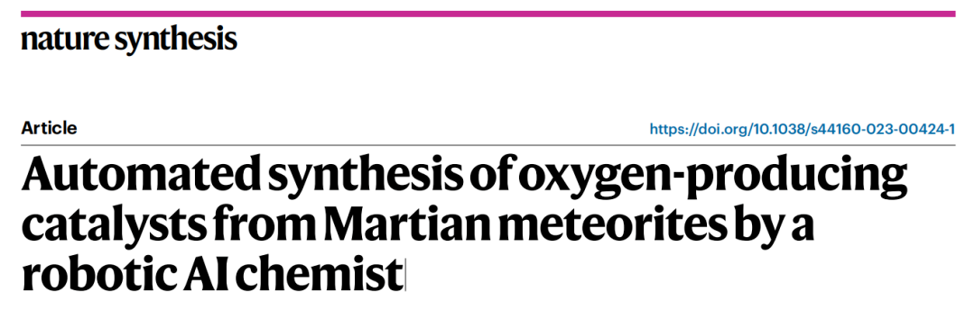 近日,由中国科学技术大学领衔的研究团队开发了一个机器人 AI 化学家,其可以从火星陨石中制造出催化剂,再测试其制氧性能,并不断重复这个过程,直到找出最好的催化剂,且无需人类干预。此外,经研究人员证明,该催化剂可以在模拟的火星条件下运作。相关研究论文以“Automated synthesis of oxygen-producing catalysts from Martian meteorites by a robotic AI chemist”为题,已发表在 Nature 子刊 Nature Synthesis 上。论文作者表示,AI 化学家代表了在火星上现场合成催化剂的一种有前景的技术,为制氧提供了概念验证,或可影响未来的载人火星任务。