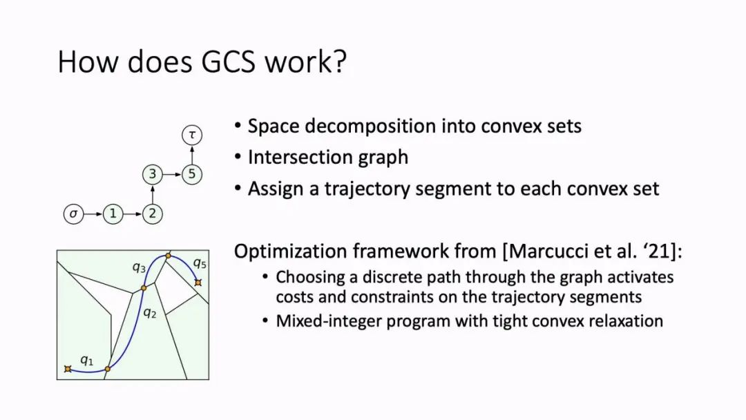 GCS最早在2021年的一篇论文中提出,作为一种数学框架,用于在图中查找最短路径,其中边缘遍历需要解决凸优化问题。在大图和高维空间中,GCS 能够精确地穿过每个顶点,因此具有在机器人运动规划方面的明显潜力。