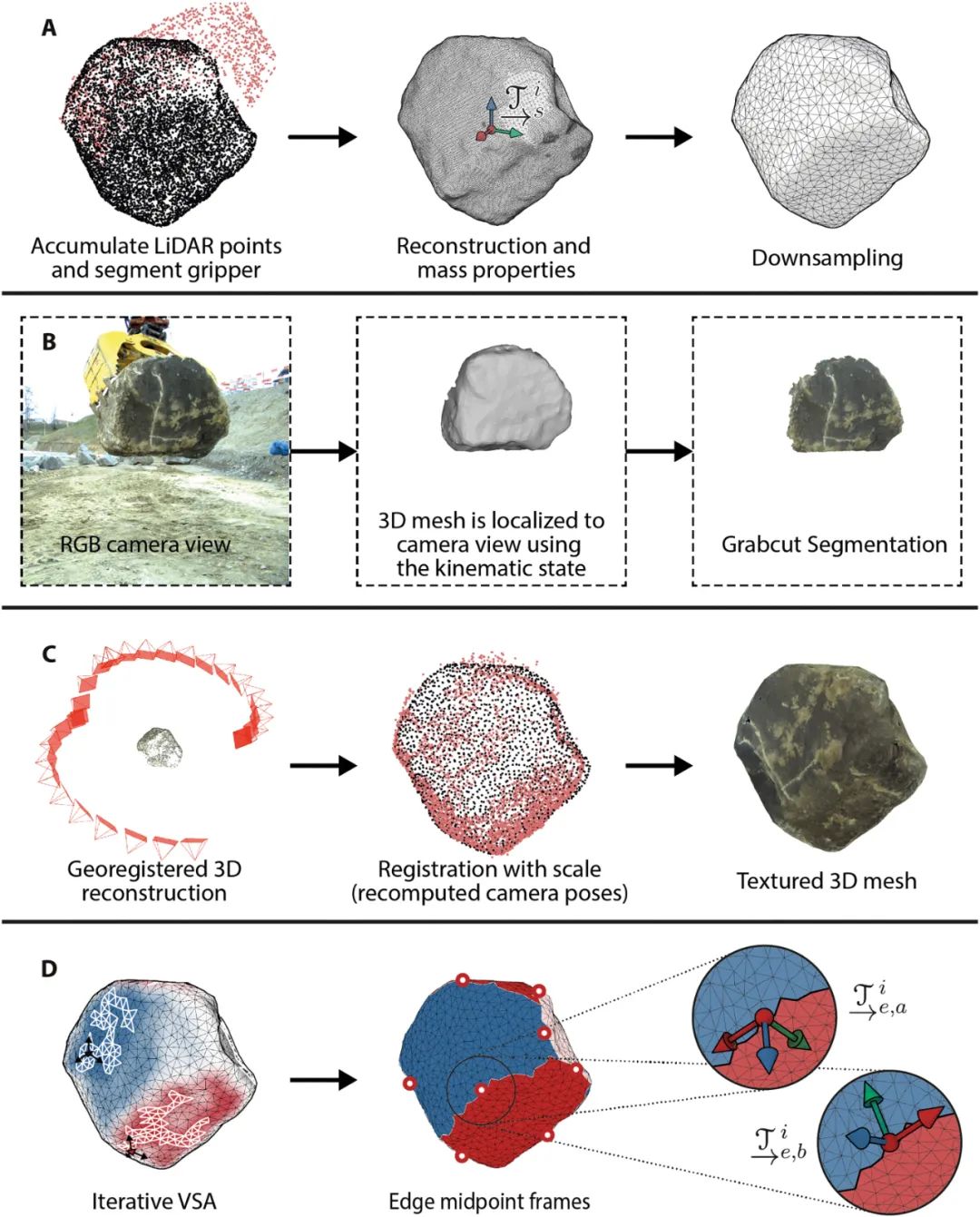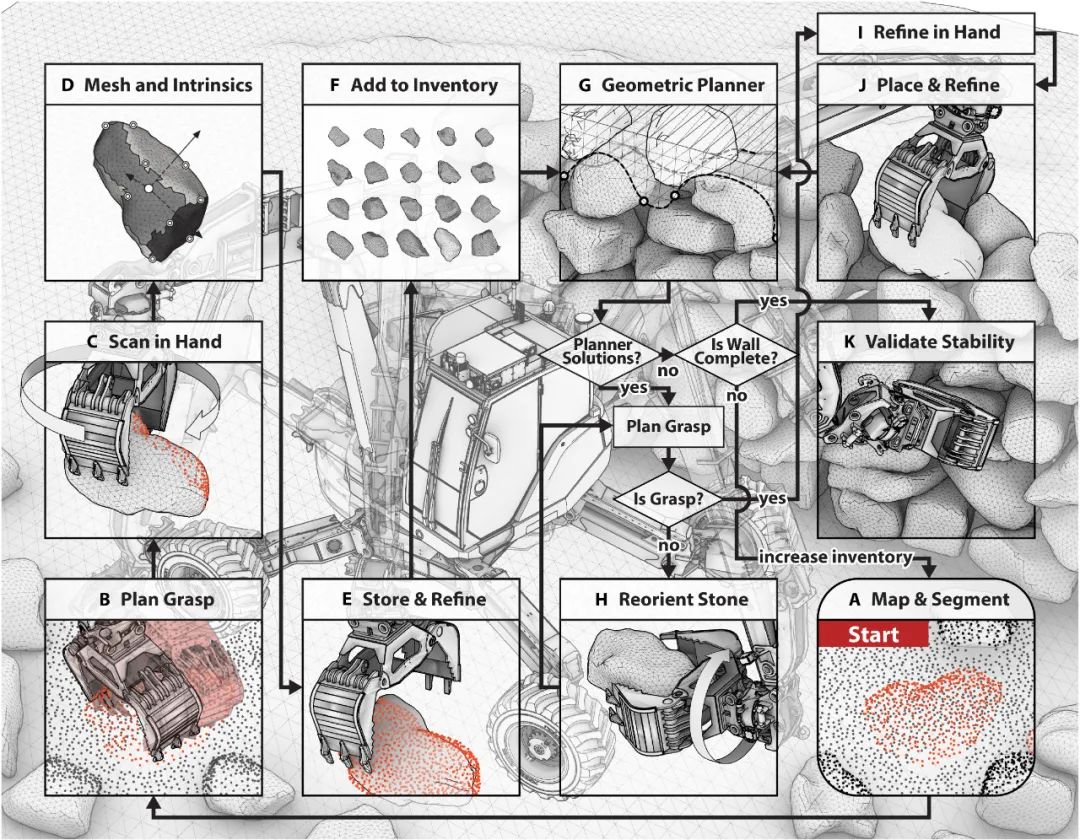 基于团队早期在几何规划、石头分割和抓取方面的工作,该研发团队提出了一个能够在野外自主检测、抓取、扫描和重新定向石头的综合系统。该系统可使几何规划器能够优化稳定和稳定的石头。