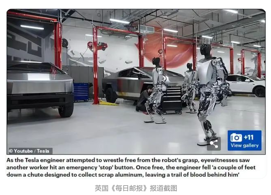 据参考消息,英国《每日邮报》网站12月26日报道,在特斯拉汽车公司位于美国得克萨斯州首府奥斯汀附近的工厂,曾发生一起残暴血腥的事故,有一名工程师遭到机器人袭击。