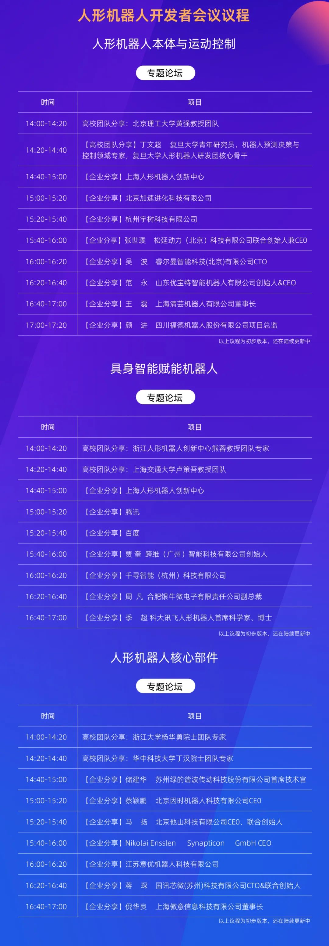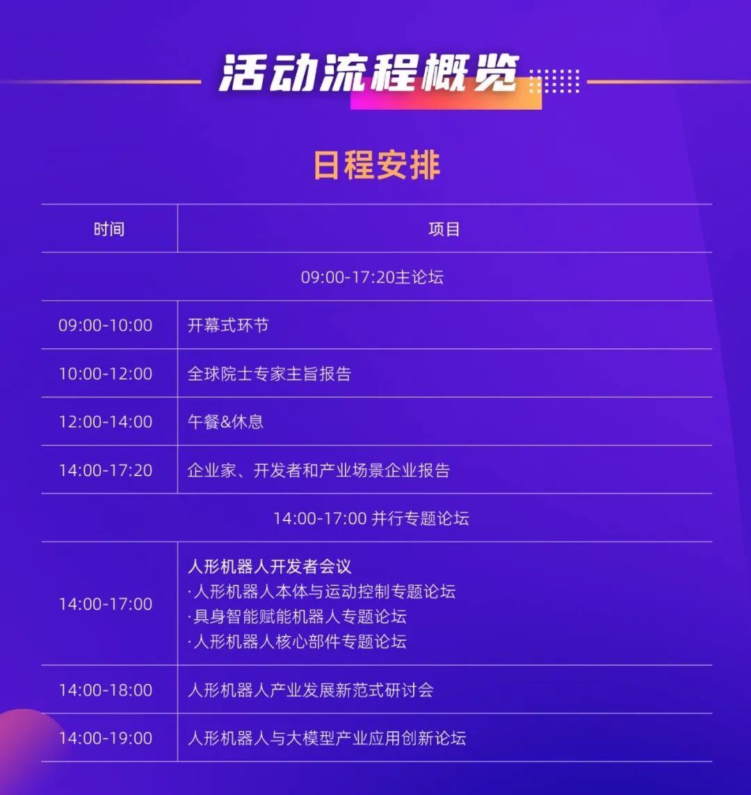 具体而言,包括1场主论坛、3场开发者专题论坛、2场专题论坛以及1场精彩的人形机器人展览,希望通过全方位、多角度、多模态的方式,展现人形机器人产业的整体风貌。