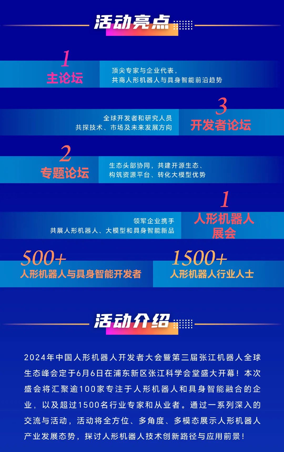 报名从速!2024中国人形机器人开发者大会6月6日将上海举办,六大论坛30+新品展示