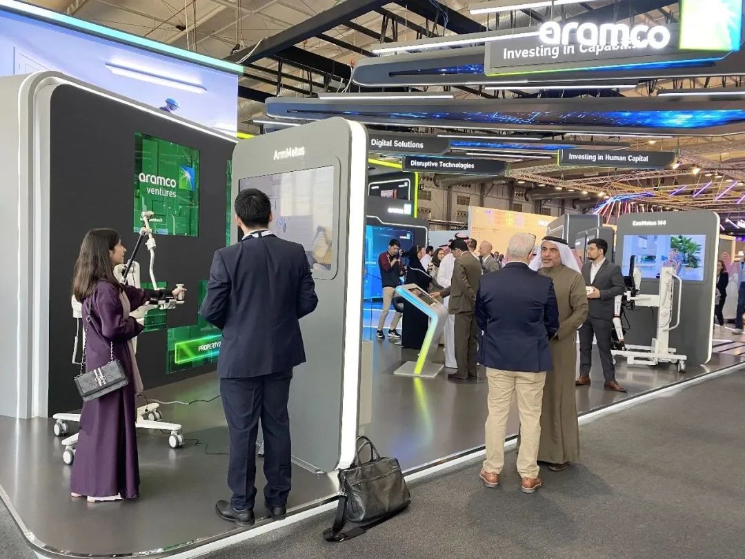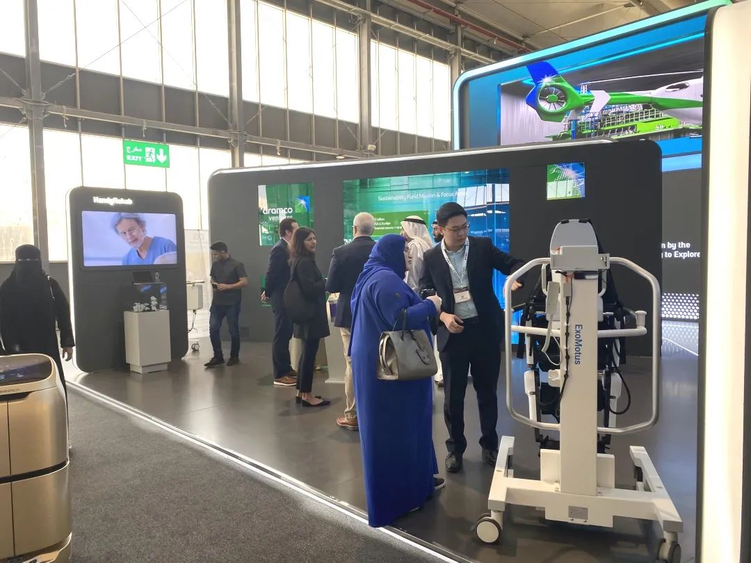 作为全球能源领导者沙特阿美旗下多元化风险投资基金的领投企业,傅利叶智能受邀参展,现场展出了ArmMotus™ EMU三维上肢康复机器人、ExoMotus™ M4下肢康复机器人等产品,吸引了众多对康复技术感兴趣的观众,主动咨询和体验。