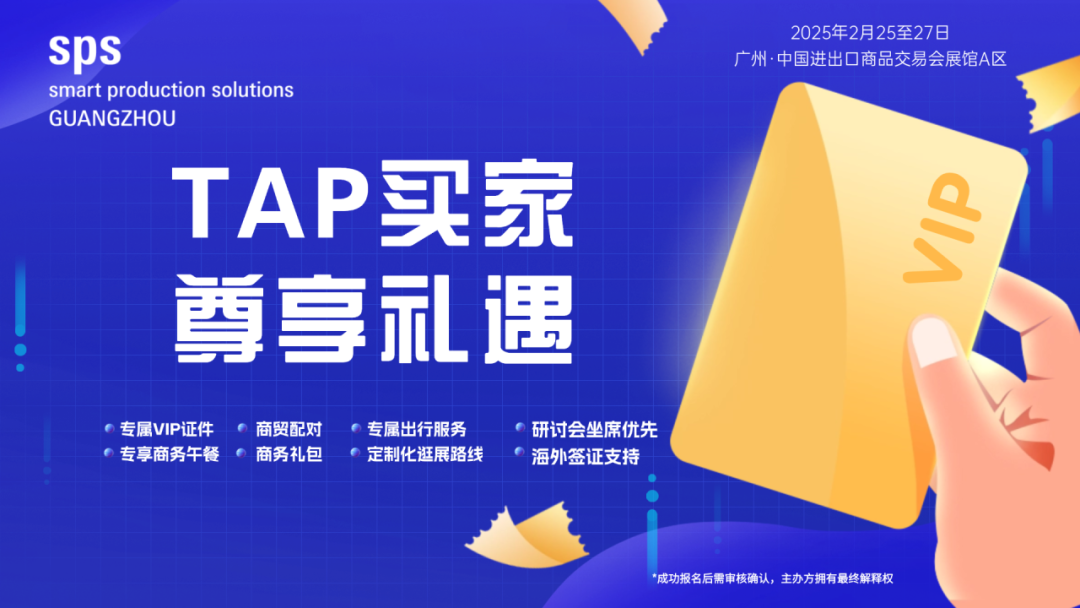为了提升您的观展效率,强化商务对接效果,SPS广州智能制造展正式启动TAP特邀买家招待计划,致力于为业界带来更多的合作机遇。