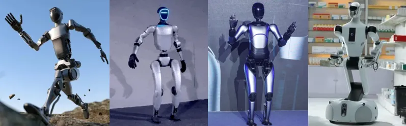 依托于中国制造和供应链优势,人形机器人中上游产业链如减速器、编码器、总成等环节,已经涌现出一些世界高水平的企业。复盘2024年,中国人形机器人涌现多匹“黑马”企业,如宇树科技发布国内首个G1智能体通过模仿学习和仿真训练实现复杂的反曲动作、银河通用大规模仿真合成数据实现机器人的泛化能力,目前国内技术路线独特,融资能力强,商业化路径清晰的黑马企业不在少数,并在人形机器人细分领域形成了不可替代效应。