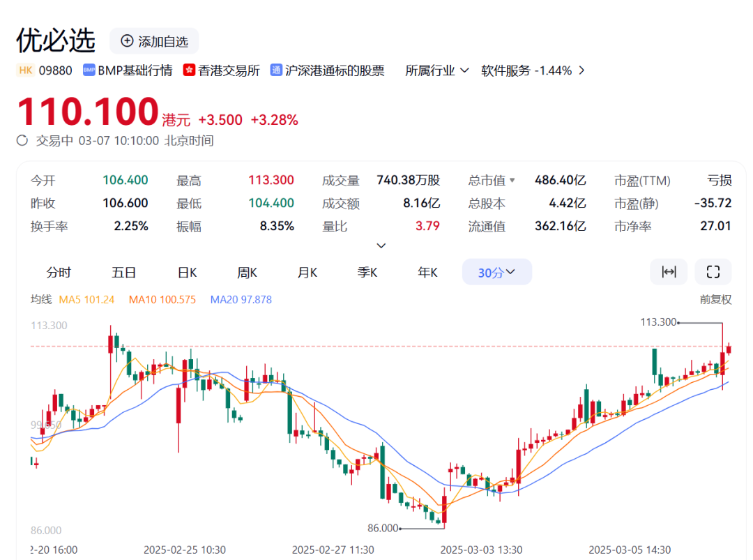 在市场一片惨淡下,2月28日,优必选市值尾盘却逆势上扬。