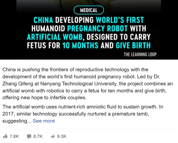 近日,外媒报道称中国正在研发一种“怀孕机器人”。