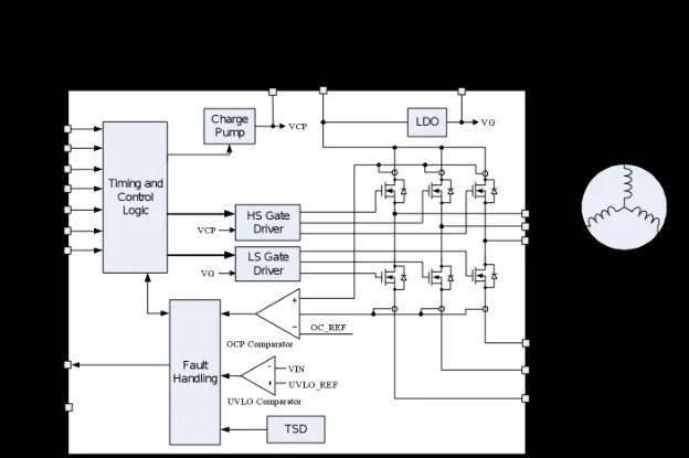 而MP6543则聚焦低电压、低功耗场景,其工作电压范围是3V至12V,内部同样集成了3路半桥驱动器,每个MOSFET内阻110mΩ。同时,为了便于控制,MP6543支持PWM与ENBL输入,支持霍尔信号输入,内置3.3V/100mA LDO调节器,与MP(Q)6547A一样具备自动同步整流功能。