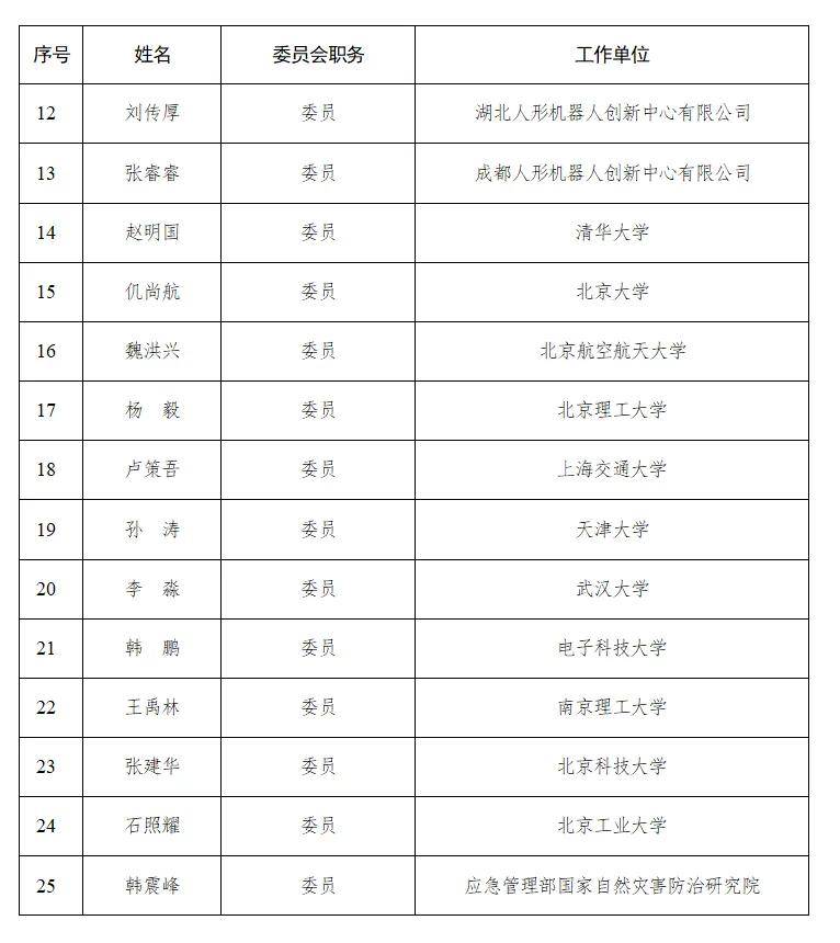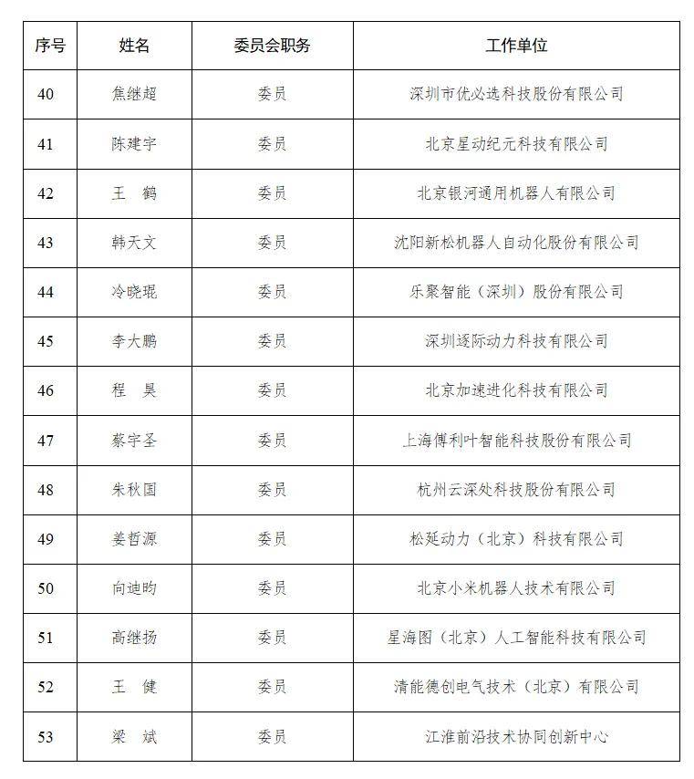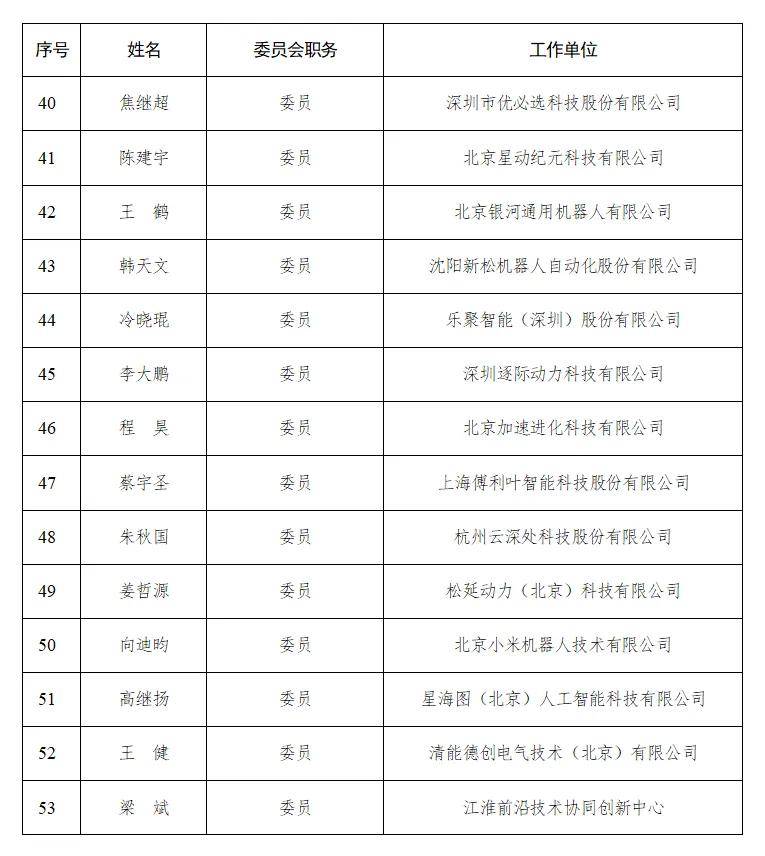 高校与科研机构的参与则为标准化工作注入了学术深度。名单中,清华大学赵明国、北京大学仉尚航、北京航空航天大学魏洪兴等高校学者以及中国电子技术标准化研究院孙传兴、中国信息通信研究院官慧琪、深圳市人工智能与机器人研究院丁宁等专家的身影赫然在列。这些专家学者长期深耕于机器人与人工智能领域,拥有高水平的专业知识与明细的发展规划,他们的加入能够确保标准的建构既能立足当下技术水平,又能预留未来发展空间。