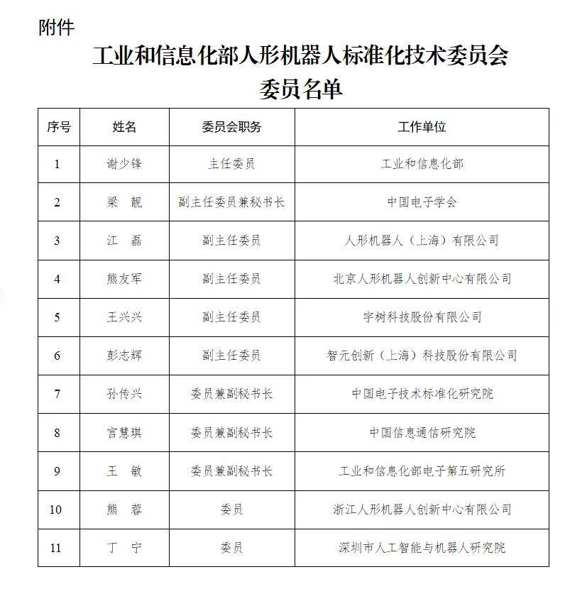 昨日,工业和信息化部公示了人形机器人标准化技术委员会委员名单。