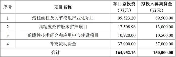 2025年5月底,公司发布定增预案,拟募集资金总额不超过15亿元。其中,拟投入8.95亿元用于建设滚柱丝杠及关节模组产业化项目,该项目总投资高达9.95亿元。据规划,项目完全达产后,将有望实现年产100万套反向式行星滚柱丝杠和50万套线性关节模组产品的产能。