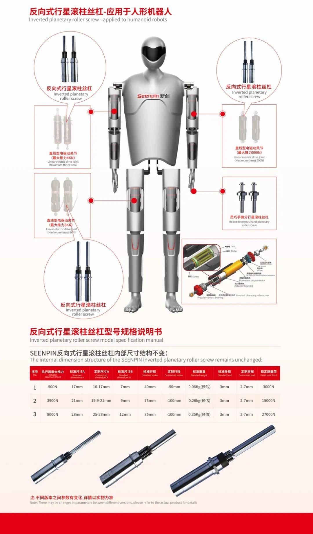 作为国家级专精特新企业,新剑传动从2008年便开始专注于行星滚柱丝杠的研发,经过十余年积累,已形成涵盖反向式行星滚柱丝杠、灵巧手微分行星滚柱丝杠等全系列产品,能够满足人形机器人的需求。