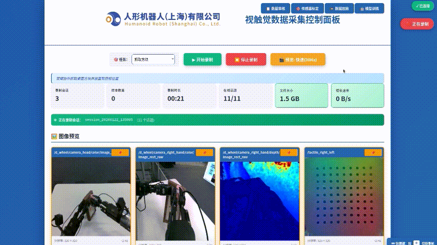 高性能方面,采用多进程架构,实现100MB/s+的实时采集效率。多模态层面,可同时兼容视觉、触觉、力觉、位姿等10+种传感器。精确同步上,通过双时间戳设计保障多传感器的时序精准对齐。成本控制上,依托多机架构的性能优势,以分布式方式处理数据采集,大幅降低系统整体成本。可靠性上,搭载队列缓冲+进程监控的双重保障机制。易用性方面,配备Web控制面板,可实现采集过程的实时监控与一键录制操作。