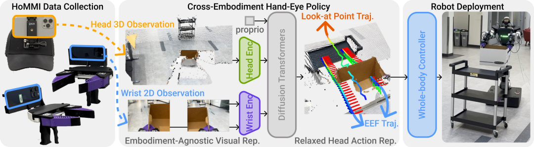 HoMMI是一套覆盖数据采集、跨体化手眼策略设计、机器人全身控制的完整框架。